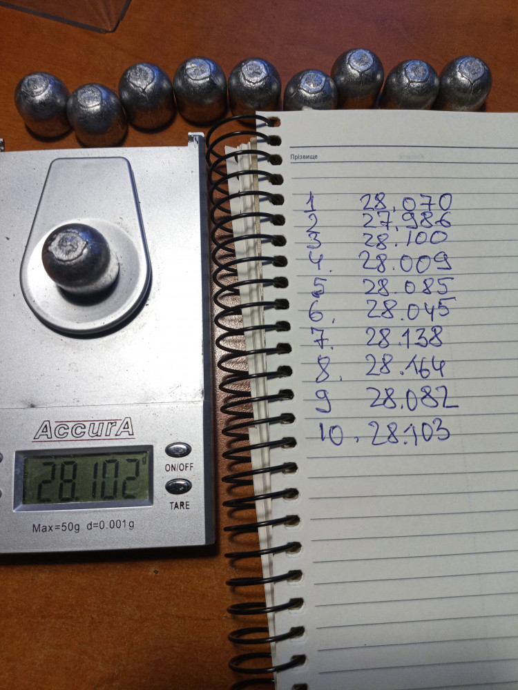 ЗаІсаєв Вячеслав•21 липня 2021 10:05Таке враження, що дуже швидко робили та не звертали уваги на якість. При спорядженні трохи розпирає гільзу, але для помпової рушниці можливо використовувати. Усі кулі відрізняються по вазі - від 27,06 до 28,62.